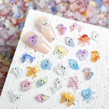 30PCS Cute Resin Octopus Conch Nail Art Charms – Luminous Dolphin, Seahorse, & More